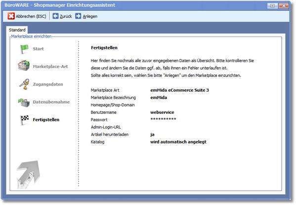 Bei Auswahl dieser Option wird nur der Marketplace angelegt, es erfolgt dabei kein Download aus emMida.