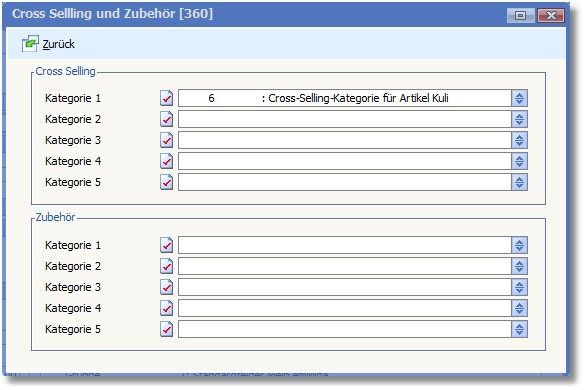 Dort kann bei Cross-Selling die Kategorie ausgewählt werden.