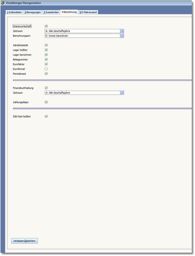 In dieser Karteikarte können Sie einstellen, welche Neuberechnungen bei einer Reorganisation vorgenommen werden sollen.