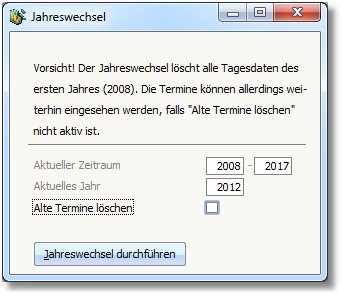 Mit dieser Funktion können Sie den Jahreswechsel für den Terminkalender durchführen.