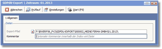 Mit [F9] können Sie den GDPdU-Export starten. |
