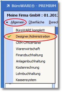 1. | Rufen Sie zuerst den Designer über den Hauptmenüpunkt "Allgemein" auf.![]() |
