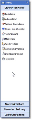 Wenn MENÜWECHSEL aktiviert þ ist, können Sie hier das Menüsystem auswählen, auf das BüroWARE wechseln soll, wenn der Arbeitsplatz aktiviert wird. Mit der [F5]-Taste oder einem Klick auf die Pfeiltaste haben Sie Zugriff auf die zur Zeit verfügbaren BüroWARE-Applikationen.