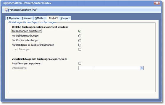 In dieser Karteikarte werden die Einstellungen für den Datev-Export festgelegt.