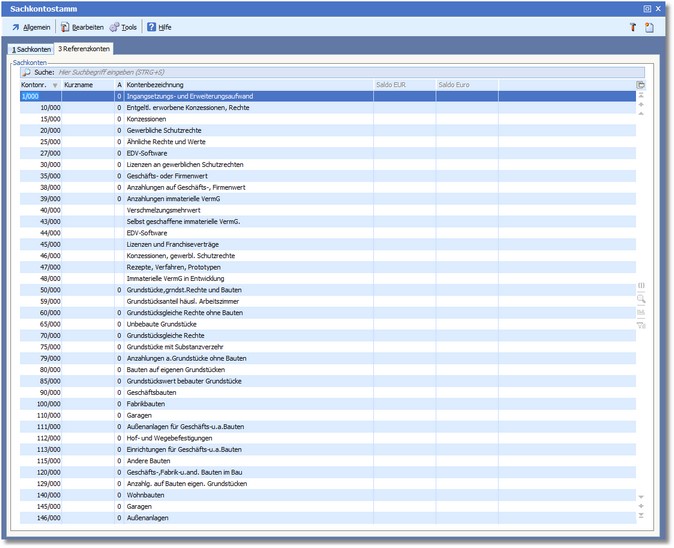 In dieser Karteikarte ist der Referenzkontenrahmen hinterlegt, der vom Anwender nicht geändert werden darf.