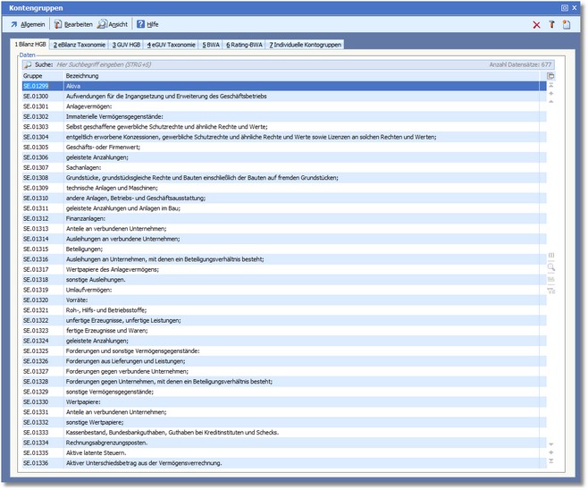 << Hier KLicken um eine Inhaltsübersicht anzuzeigen >> Navigation: Finanzbuchhaltung > Stammdaten > Sachkonten > Die Karteikarte "Sachkonten" > Sachkonten - Menü > Kontengruppen |