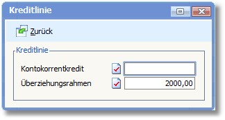 Ist ein Kreditrahmen mit der Bank vereinbart, wird der Betrag in dieses Feld eingetragen.