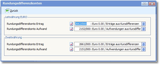 << Hier KLicken um eine Inhaltsübersicht anzuzeigen >> Navigation: Finanzbuchhaltung > Stammdaten > Basisdaten > Basisdaten - Menü "Bearbeiten" > Rundungsdifferenzkonten |