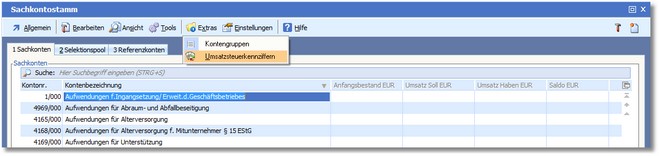 1. Klicken Sie im Sachkontenstamm auf den Menüpunkt "Extras > Umsatzsteuerkennziffern".