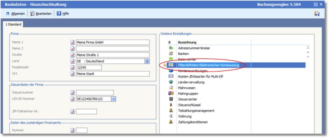 Die Basisdaten der Finanzbuchhaltung werden geöffnet.