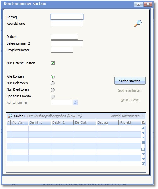 Hier können Sie eine Kontonummer nach Belegangaben suchen.