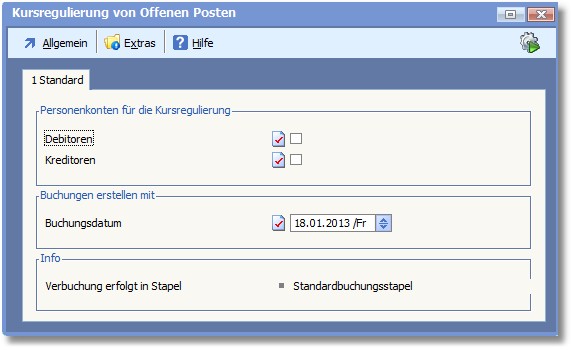 Das Programm öffnet den Dialog "Kursregulierung von Offenen Posten".