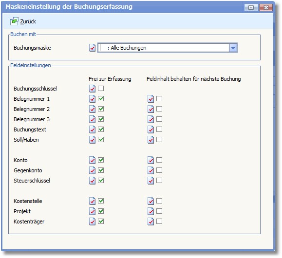 Legen Sie hier die Einstellungen der Buchungsmaske fest: