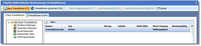<< Hier KLicken um eine Inhaltsübersicht anzuzeigen >> Navigation: Finanzbuchhaltung > PayPal > Neue Transaktionen |