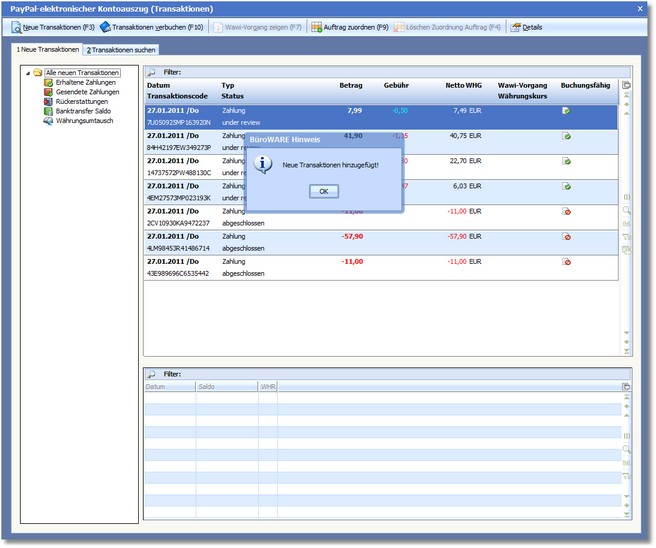 Das Programm holt nun aus Ihrem PayPal-Konto alle neuen Transaktionen ab.