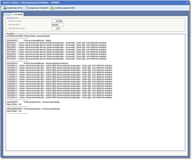 Anschließend können Sie die Datei mit der Funktionstaste [F9] oder Klick auf den Button <Versand per E-Mail> an Ihren Steuerberater versenden.