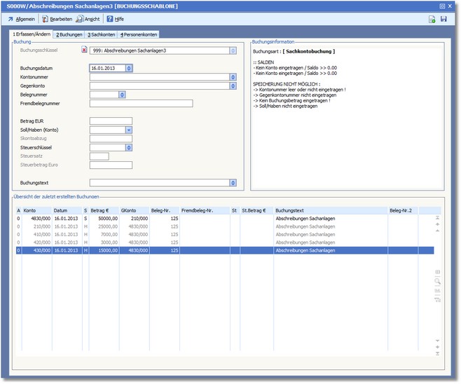 << Hier KLicken um eine Inhaltsübersicht anzuzeigen >> Navigation: Finanzbuchhaltung > Stapelbuchungen > Die Karteikarte "Schablonen" > Schablonen anlegen und ändern |
