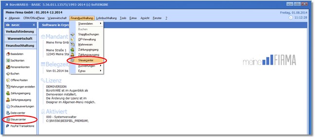 << Hier KLicken um eine Inhaltsübersicht anzuzeigen >> Navigation: Finanzbuchhaltung > Steuercenter |