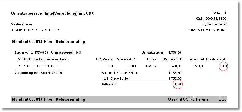Rundungsdifferenzen, die sich aus der Berechnung zahlreicher kleinerer Belege ergeben, führen nicht mehr zu USt-Differenzen, sondern werden nur noch als Rundungsdifferenzen in der USt-Prüfliste ausgewiesen.