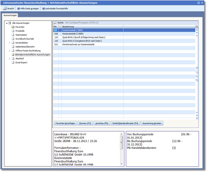 << Hier KLicken um eine Inhaltsübersicht anzuzeigen >> Navigation: Finanzbuchhaltung > Auswertungen > Druckauswertungen > Betriebswirtschaftliche Auswertungen |