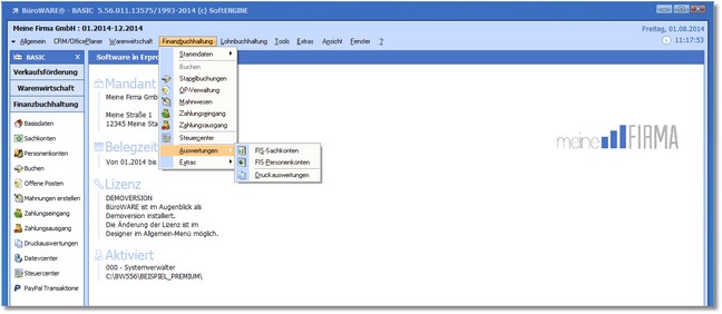 Sie erreichen diese Bereiche entweder über das Hauptmenü der Finanzbuchhaltung