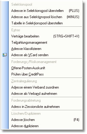 Mit [F6] öffnen Sie ein Kontextmenü mit folgenden Funktionen:
