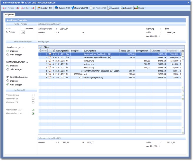 LAUFSALDO zeigt das Ergebnis aus Soll- und Habenbuchung in Euro (Titelleiste).