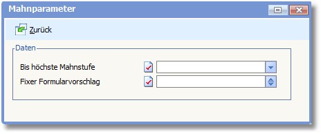 In dieser Optionsmaske können Sie zusätzliche Parameter für den Mahnvorschlag hinterlegen: