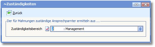 << Hier KLicken um eine Inhaltsübersicht anzuzeigen >> Navigation: Finanzbuchhaltung > Stammdaten > Basisdaten > Mahngruppen > Mahngruppe erfassen/ändern > Die Karteikarte "Standard" > Zuständigkeiten |