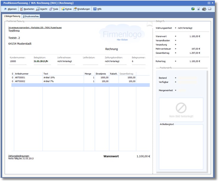 Durch die neue Istversteuerung müssen keine zusätzlichen Einstellungen in der Warenwirtschaft definiert werden. Die Erfassung erfolgt analog der Sollversteuerung.