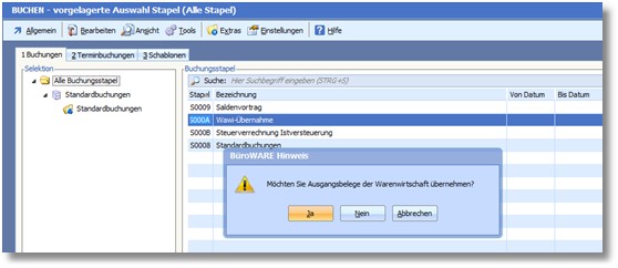 Abb. Ausgangsbelege der Warenwirtschaft übernehmen