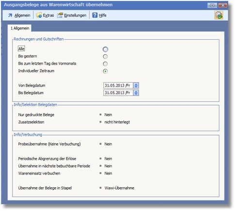 Abb. Übernahme Warenwirtschaftsbelege