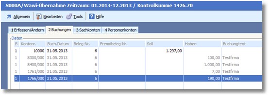 Abb. Übernommener Buchungssatz