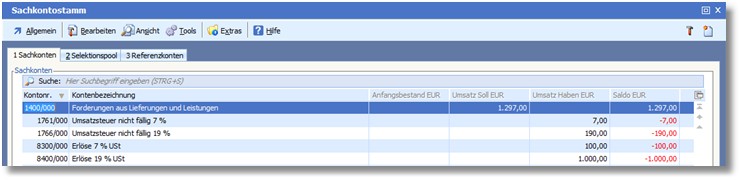 Anhand der „Details Belegpositionen“ ist ersichtlich, dass auf das reguläre Sollversteuerungserlöskonto bei der neuen Istversteuerung gebucht wird.