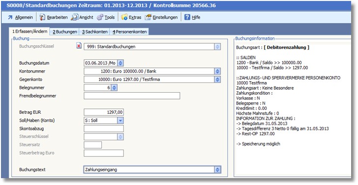 Abb. Verbuchung Zahlungseingang
