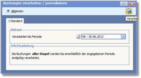 Diese Funktion ist lediglich dann zu verwenden, wenn z.B. die Istversteuerungsumbuchungen für einen kompletten Monat z.B. 06/2013 zu korrigieren sind.p580