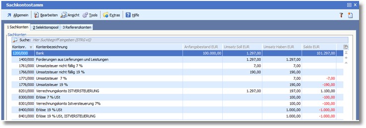 Bei den „Verrechnungskonto ISTVERSTEUERUNG“ sowie „Erlöse * USt Istversteuerung“ bleiben die Salden bestehen, welche sich jedoch gegenseitig aufheben.