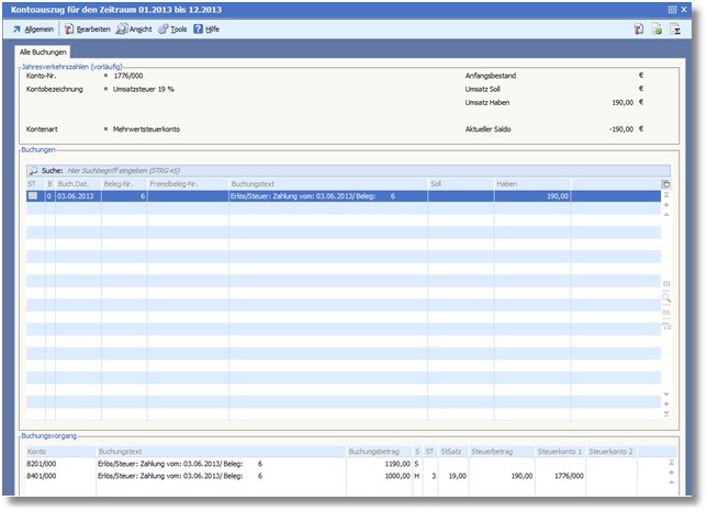 Die fällige Umsatzsteuer wurde in unserem Beispiel auf die folgenden Konten gebucht: