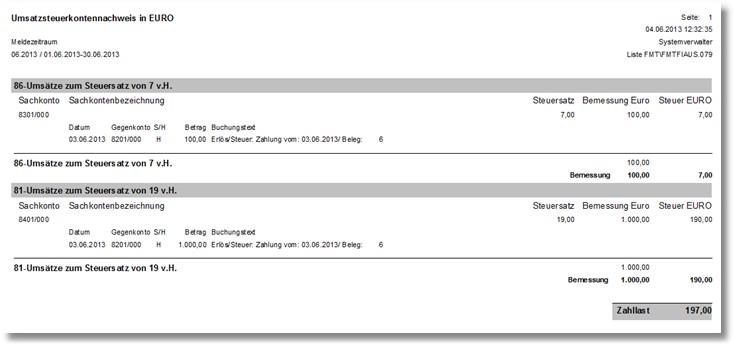 Abb. USt-Kontennachweis mit Buchungsnachweis