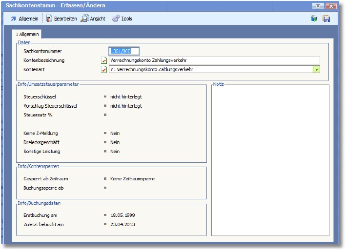 Im Verrechnungskonto Zahlungsverkehr sollten folgende Einstellungen vorgenommen werden: