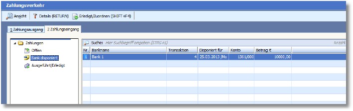 Disponierte Bankzahlungen