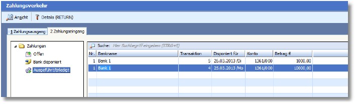 Die Transaktion wurde somit automatisch vom Bereich "Bank disponiert" in "Ausgeführt/Erledigt" verschoben: