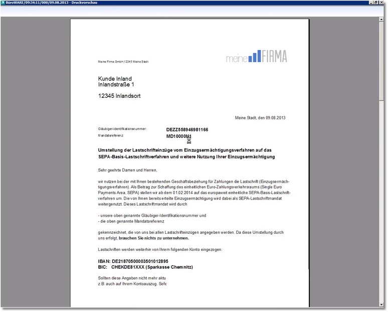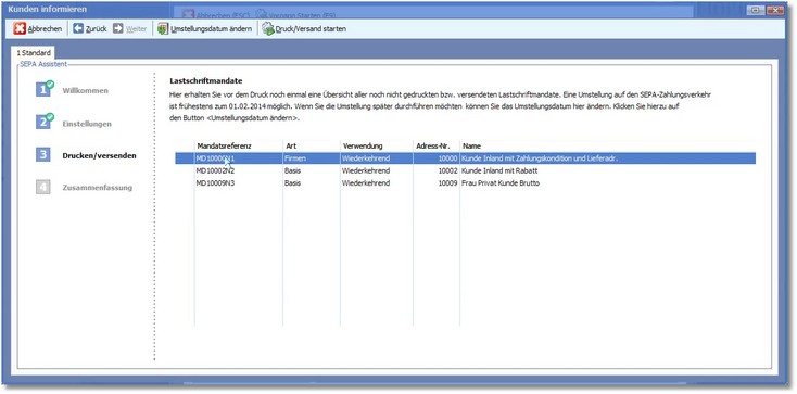Es werden nun zum einen Umstellungsschreiben gedruckt, dass also Ihre bisherigen Lastschrifteinzüge als SEPA-Basis-Lastschrift umgedeutet werden.
