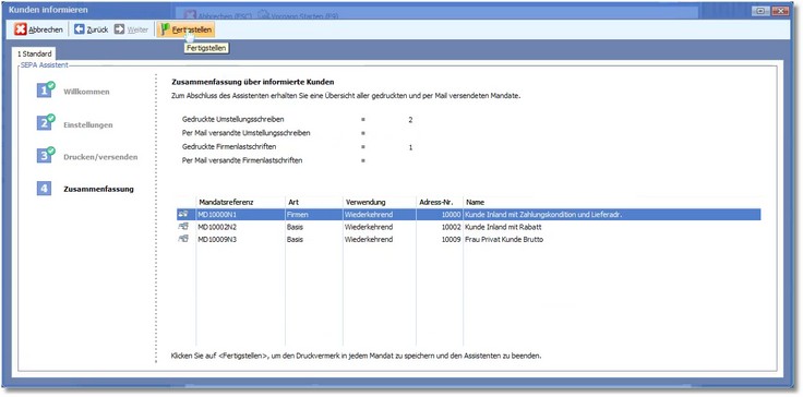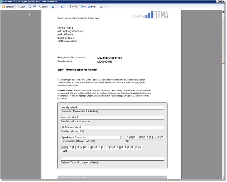Weiterhin werden entsprechende Firmenlastschriftmandate erstellt, die vom Kunden nochmals unterschrieben werden müssen.