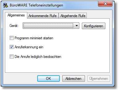 << Hier KLicken um eine Inhaltsübersicht anzuzeigen >> Navigation: OfficePlaner > Telekommunikation/BüroWARE Phone > Allgemeine Einstellungen |