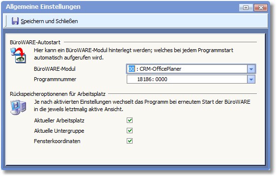 BüroWARE öffnet den Dialog "Allgemeine Einstellungen".