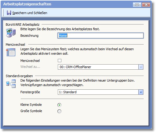 Über den "Eigenschaften-Dialog" des Arbeitsplatzes können Sie die bei der Neuanlage getroffenen Einstellungen ändern. Um die Eigenschaften des Arbeitsplatzes aufzurufen, gehen Sie bitte wie folgt vor: