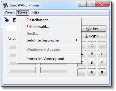 << Hier KLicken um eine Inhaltsübersicht anzuzeigen >> Navigation: OfficePlaner > Telekommunikation/BüroWARE Phone > Oberfläche und Bedienung > Das Menü |