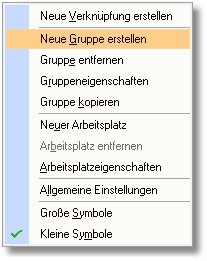 Tragen Sie hier die Bezeichnung der Gruppe ein. Die Bezeichnung sollte so gewählt werden, dass der Anwender leicht einen Zusammenhang zwischen der Gruppe und den darin befindlichen Verknüpfungen herstellen kann.
