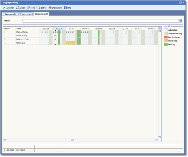 << Hier KLicken um eine Inhaltsübersicht anzuzeigen >> Navigation: OfficePlaner > Terminverwaltung > Tagesplanung > Karteikarte "Projektansicht" |